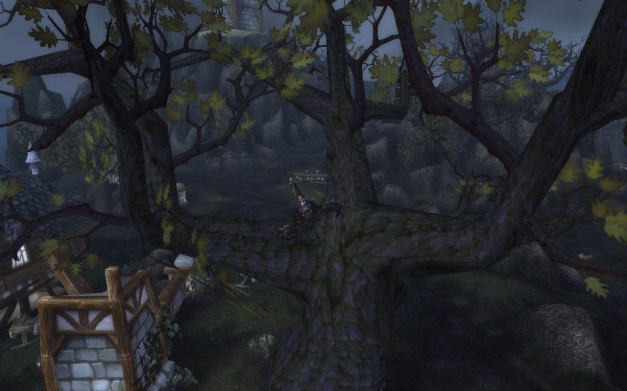With Molten Front out of the way, we decided to start doing Tol Barad dailies. Mooglegem would sometimes get stuck in a tree after we slow fell from a tower.
