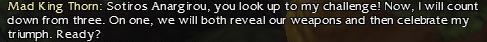 In better news, Mad King Thorn chose me to battle him in rock-paper-scissors! I think it was the first time I’ve been chosen. Of course, I was going back and forth between two computers while multiboxing. It was the first round, and I had done my emote too early by accident. He killed me. But maybe I’ll get my chance to best him next year (if I continue my tradition of playing).
