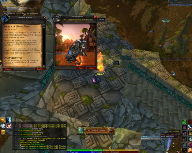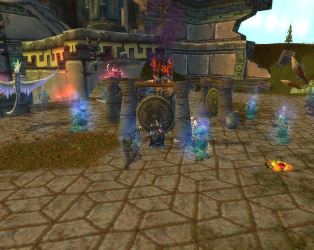 While I always have trouble remembering exactly what went on in each zone, I did enjoy the story as it played out. I enjoyed the various stories – worgen, furbolgs, Loken’s forces, and especially the trolls. In the picture above I was partying with the spirits I put at ease!